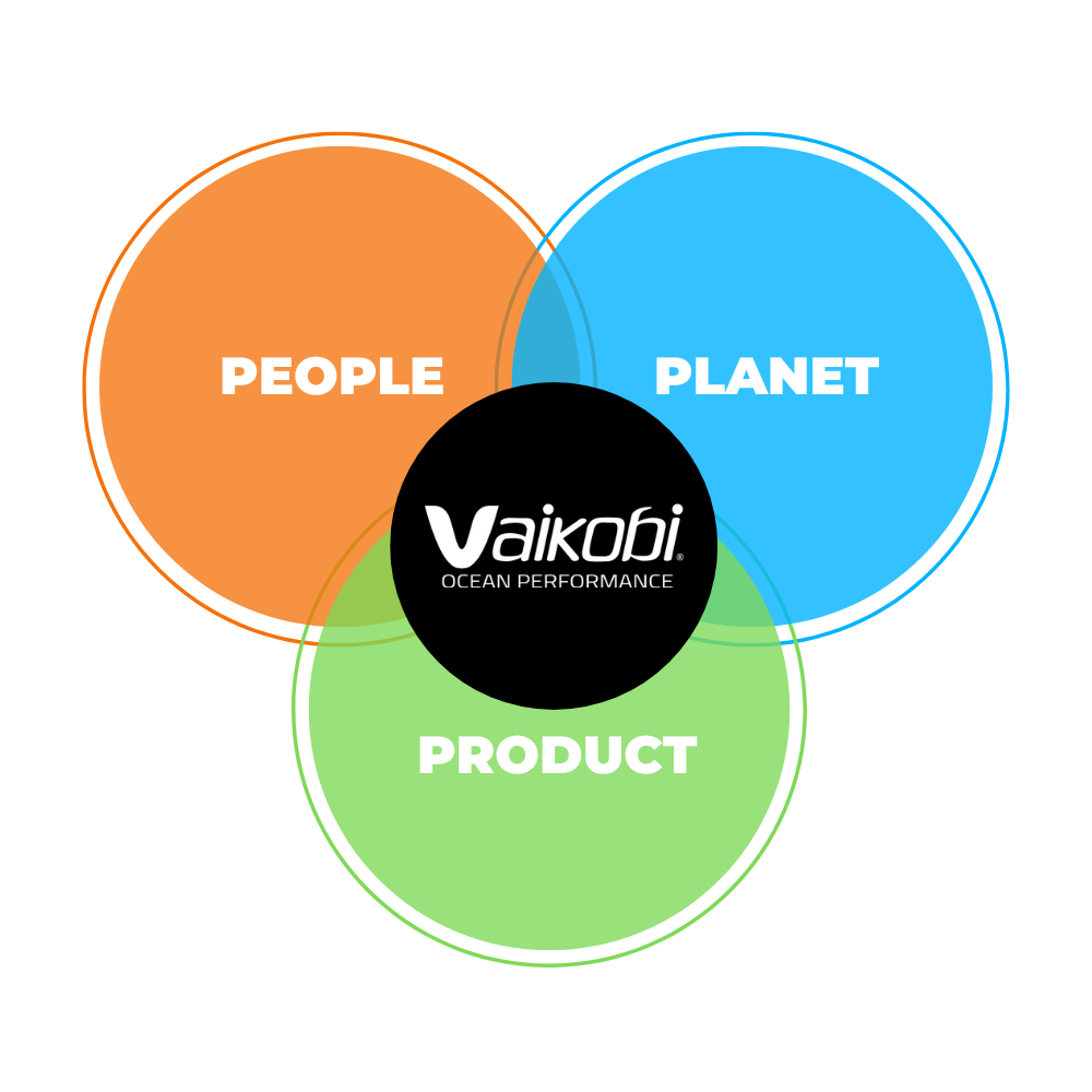 Vaikobi’s sustainability strategy ensures a bold and achievable path toward leadership in marine sportswear sustainability to create a positive impact on people, product, and planet.
